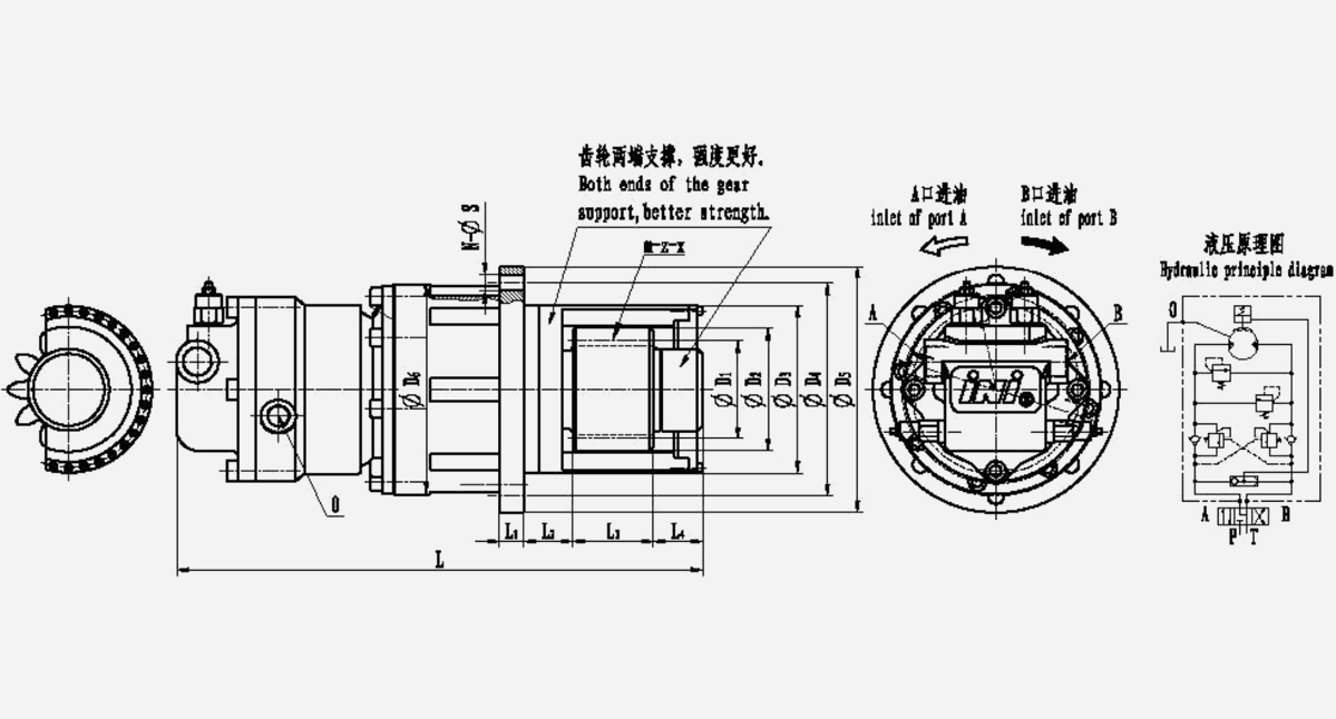 Bộ truyền động xoay thủy lực dòng IYH được tự phát triển với quyền sở hữu trí tuệ độc lập. Chúng chủ yếu bao gồm động cơ thủy lực, phanh thủy lực nhiều đĩa, hộp số hành tinh loại C và bộ phân phối. động cơ thủy lực có thể